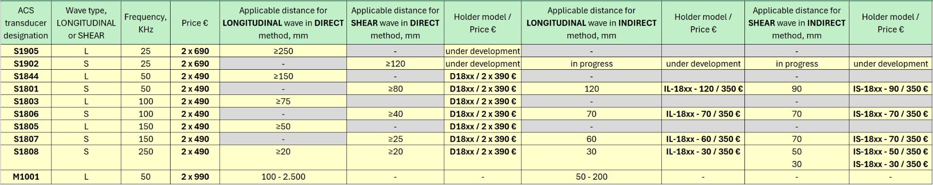 | * Further ultrasonic transducers for P-wave and S-wave transmission | 1 |