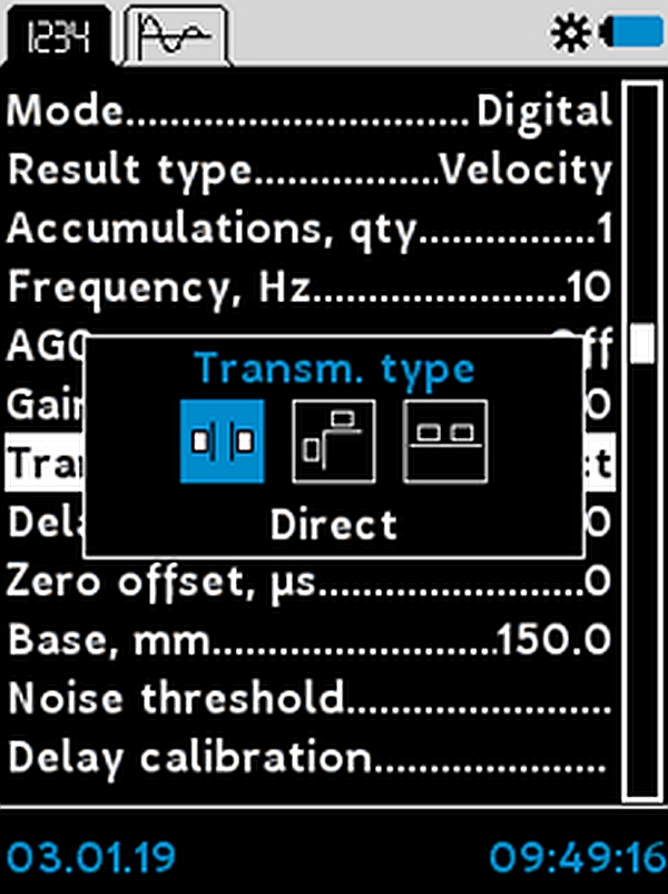 | Indication resolution of the propagation time of ultrasonic waves, µs |
